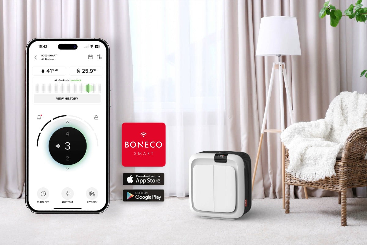 - Die BONECO SMART App bietet eine intuitive Benutzerführung und Navigation sowie einen innovativen Timer